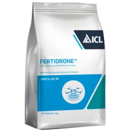 Fertidrone 0-43-35 is a high-analysis water-soluble PK fertilizer developed for drone-assisted precision agriculture. With zero nitrogen and a concentrated phosphorus-potassium formulation, it supports flowering, fruit setting, and ripening stages where nitrogen restriction is critical. Its high solubility ensures rapid foliar absorption and unifor..